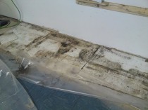 Bei diesem Trockenestrich aus Spanplatten war an den Wänden kein sichtbarer Befall vorhanden, es bestand lediglich der Verdacht. Durch einen Schnelltest an der Sockelleiste konnte der Verdacht betätigt werden.